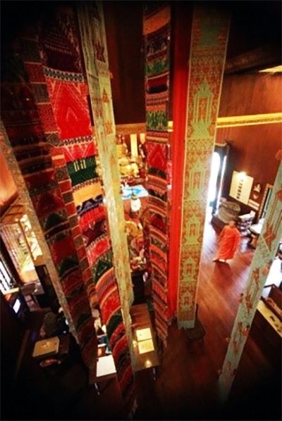 3. ตุง หรือ ธงทำขึ้นเพื่อถวายเป็นพุทธบูชาและในการทำบุญอุทิศให้แก่ผู้ที่ล่วงลับไปแล้วหรือถวายเพื่อเป็นปัจจัยส่งกุศลให้แก่ตนในชาติหน้าด้วยเชื่อว่าเมื่อตายไปแล้วจะได้เกาะยึดชายตุงขึ้นสวรรค์และไปไหว้พระจุฬามณีเจดีย์มีขนาด รูปร่าง และรายละเอียดด้านวัสดุตกแต่งแตกต่างกันไปตามความเชื่อและพิธีกรรมตลอดจนตามความนิยมในแต่ละท้องถิ่นวัสดุที่ใช้ทำมีหลายชนิด เช่น ไม้ สังกะสี ผ้า กระดาษ ใบลาน เป็นต้น Tung A religious or ceremonial banner. It may be created to make merit for the spirit of the departed or for oneself in the next life. The belief is that when one passes away, one will raise the fringes up to the Chulamaneechedi in the heavens. Their size, shape and style are diverse and vary according to the rituals and ceremonies for which they are created. They may be made of wood, metal, cloth, paper, palm leaf and other materials.